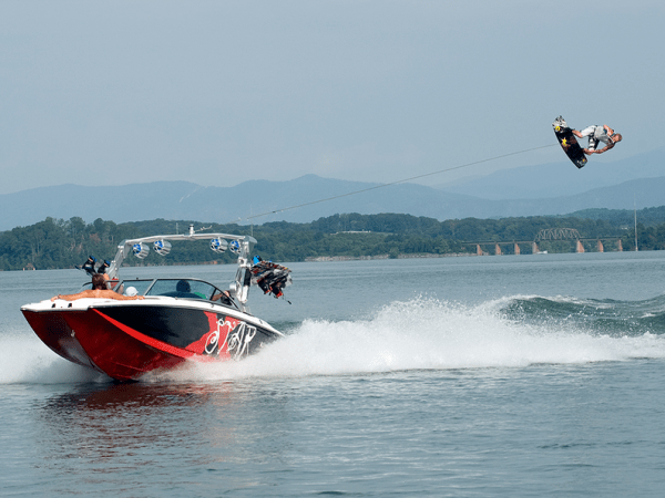 With lots of power, lots of seats, and big wakes, this MasterCraft boat is one mean boat on the water. It has a built in HD tower camera that captures all of the jumps behind the X-Star and then you can turn around at watch it on the big screen in the cockpit of the boat.